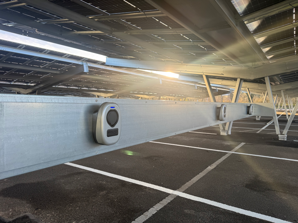As part of the canopy design, two EV beams were installed between canopy posts, enabling EV charge points to be incorporated without the need for additional plinths or standalone posts.